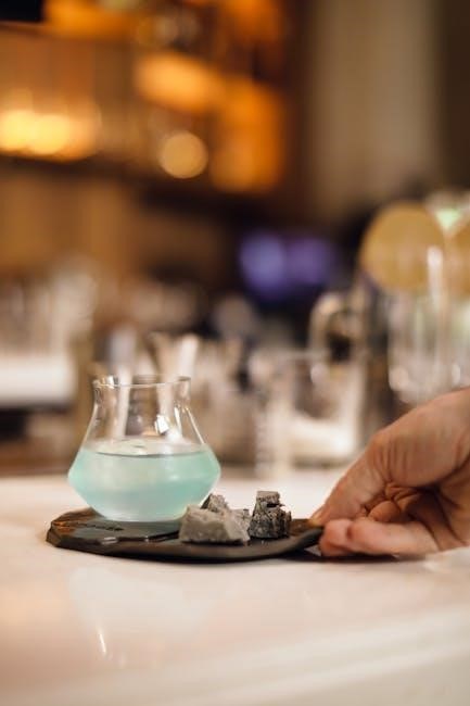 Bartenders must understand blender speeds and ingredient ratios. Adding ingredients in the correct order – typically liquids first – ensures smooth blending. Blenders are also used for crushing ice, creating snow-like textures for specific drinks; Proper cleaning is vital to prevent flavor contamination.